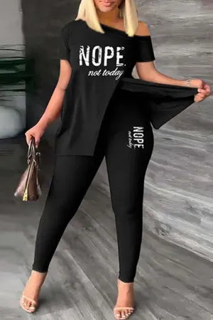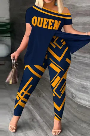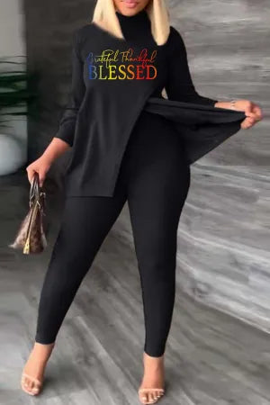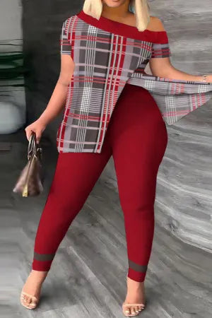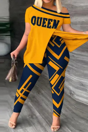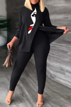 2 Peças conjuntas estampa casual patchwork fenda gola oblíqua