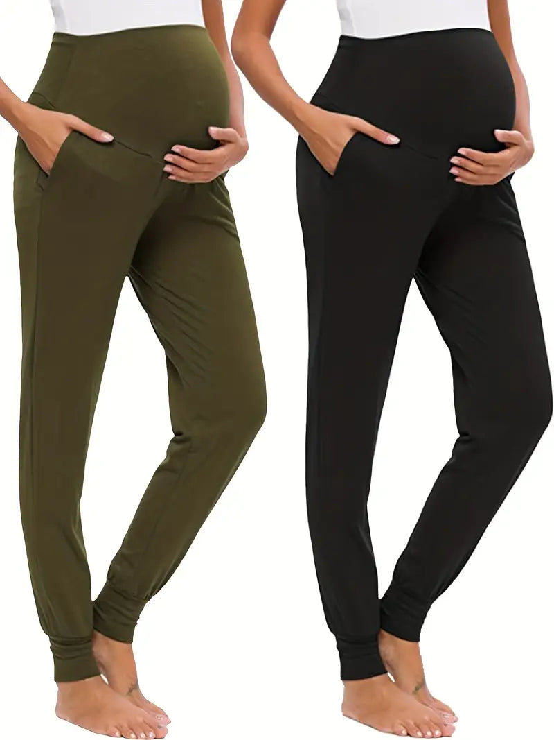 2 peças confortáveis de cintura com bolso e com suporte para barriga para maternidade