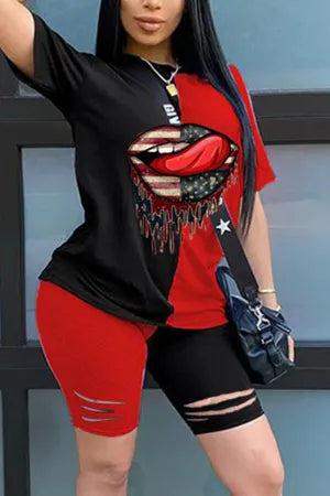 2 Peças conjuntas Estampa patchwork de lingua