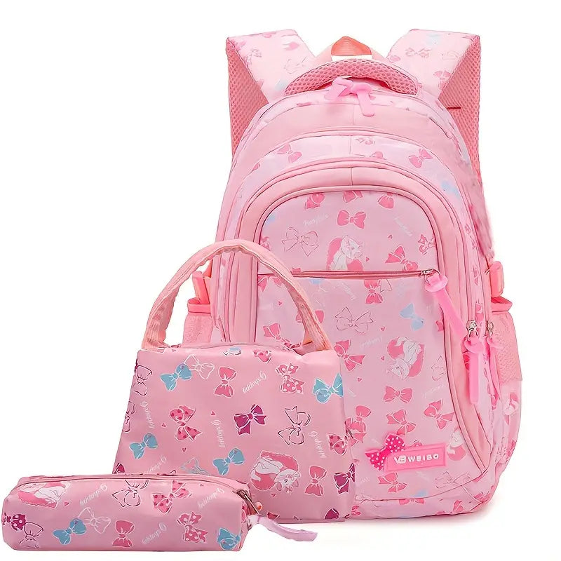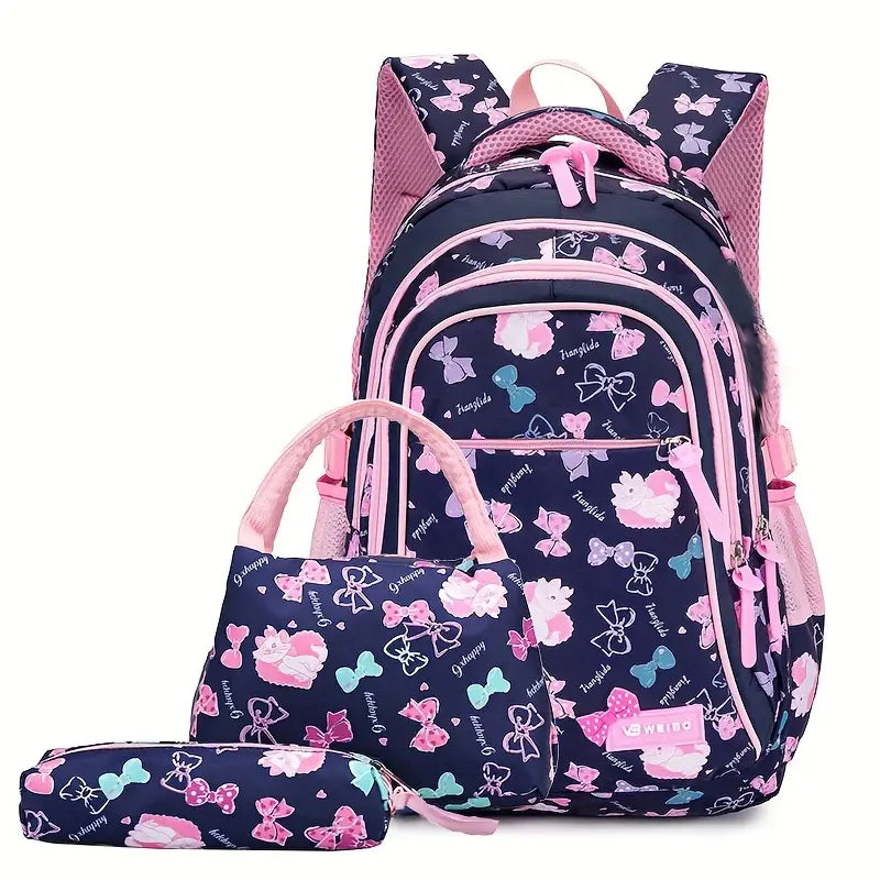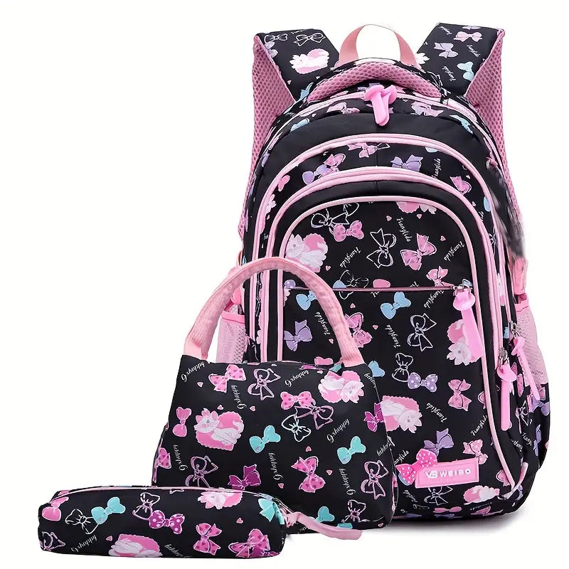 3pcs mochila impressa fofa, mochila escolar com lancheira e estojo de lápis