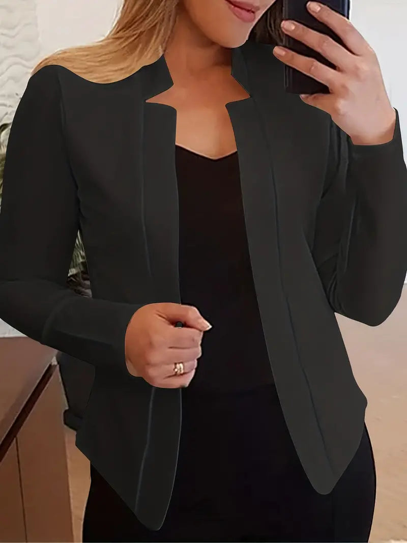 Blazer frontal aberto liso, agasalho elegante de trabalho de manga comprida para escritório