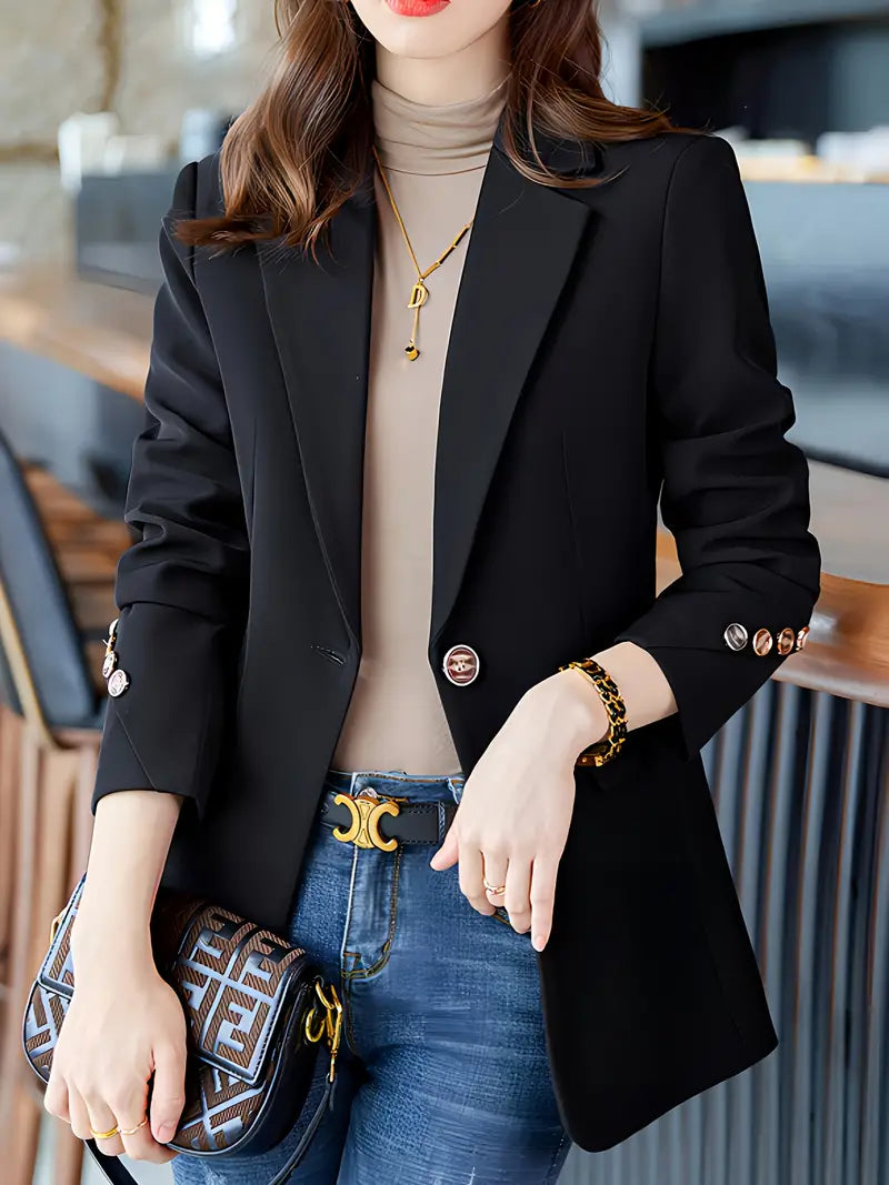 Blazer frontal com botão de colarinho entalhado, blazer elegante de manga comprida para escritório