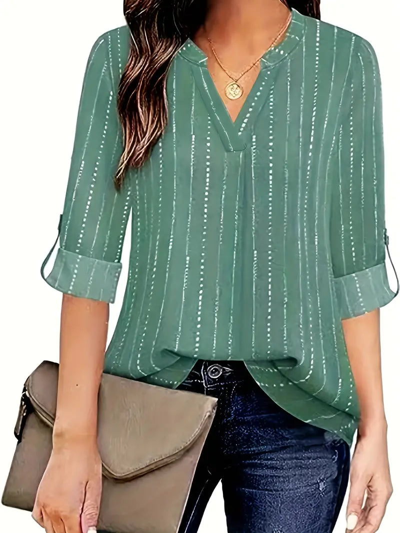 Blusa toda estampada com decote redondo, blusa casual de manga comprida