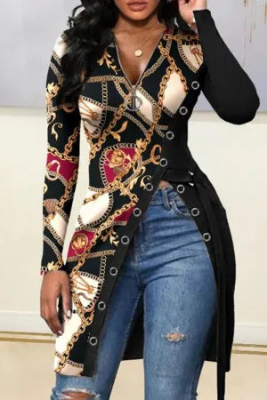 Blusas assimétricas com zíper e com estampa sexy , estampa de leopardo