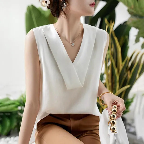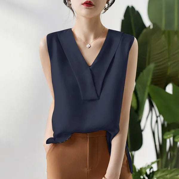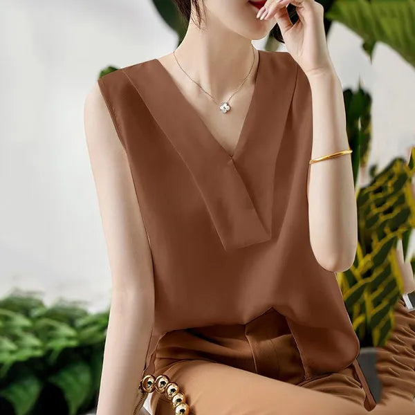 Blusas fashion verão sem mangas com decote em V para trabalho