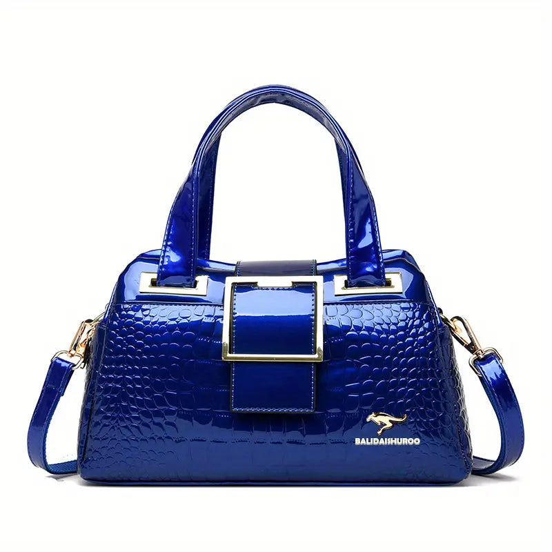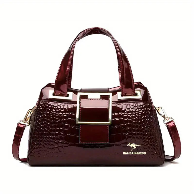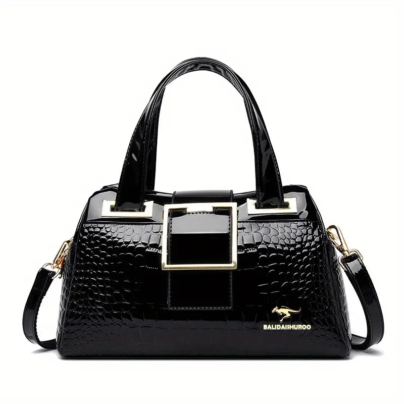Bolsa com padrão de crocodilo, bolsa de ombro feminina de couro envernizado