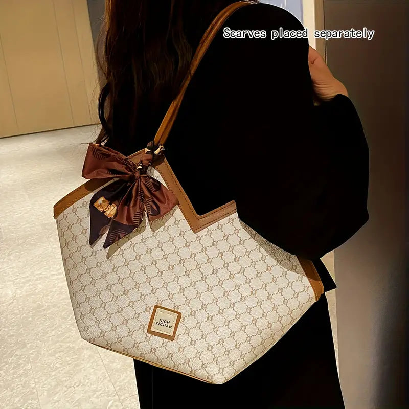 Bolsa de ombro moderna com padrão geométrico, sacola de costura clássica com decoração de lenço
