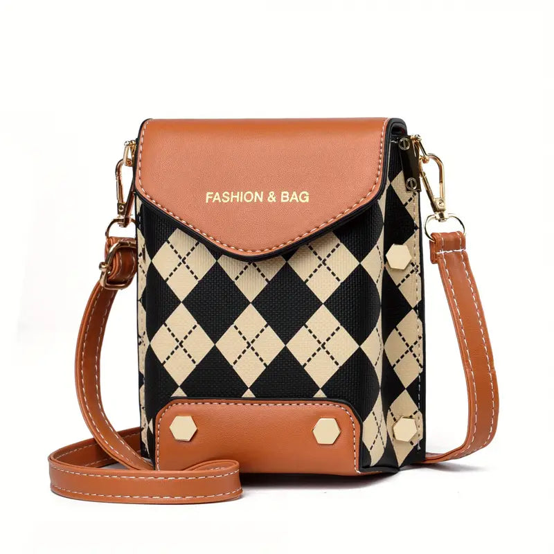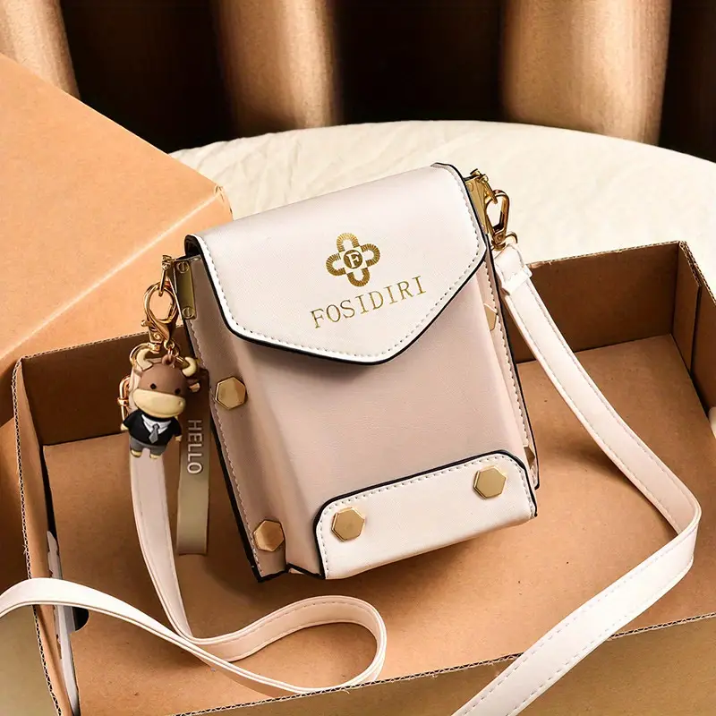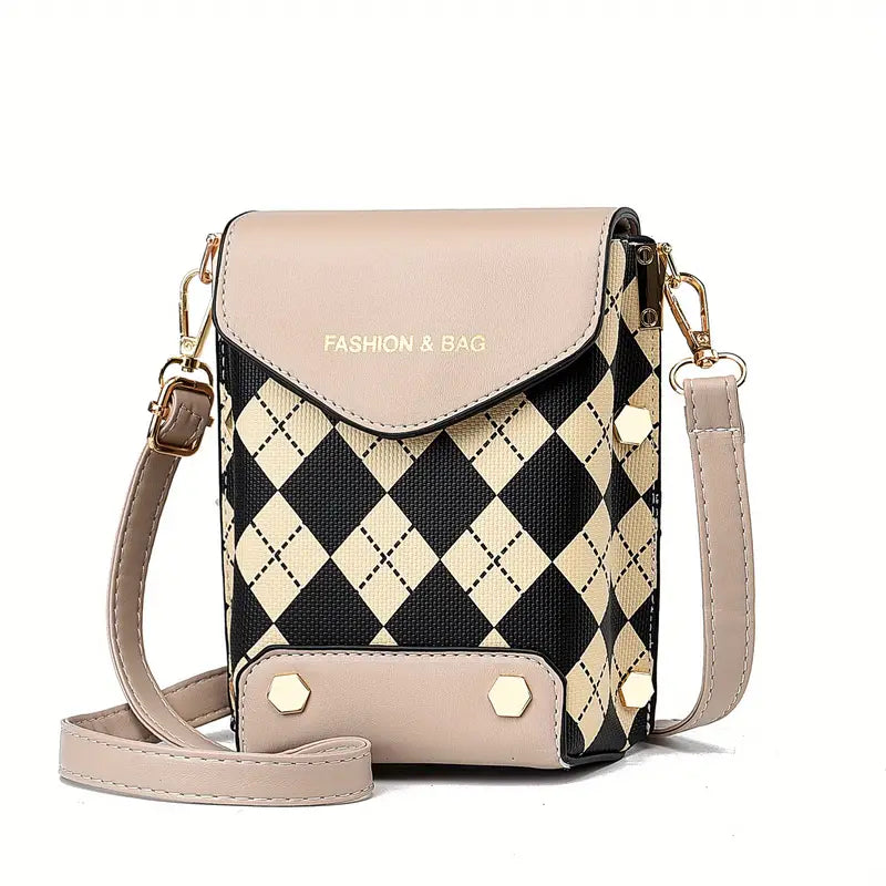 Bolsa de telefone crossbody com mini aba, bolsa de ombro com estampa de letras