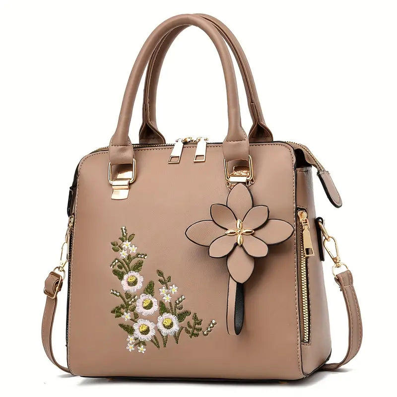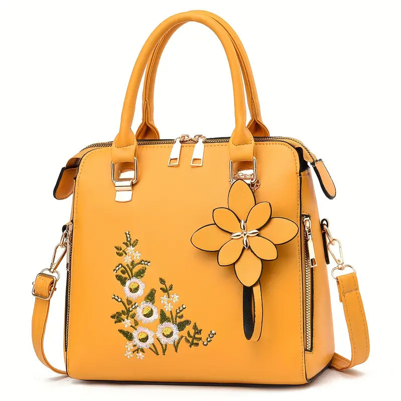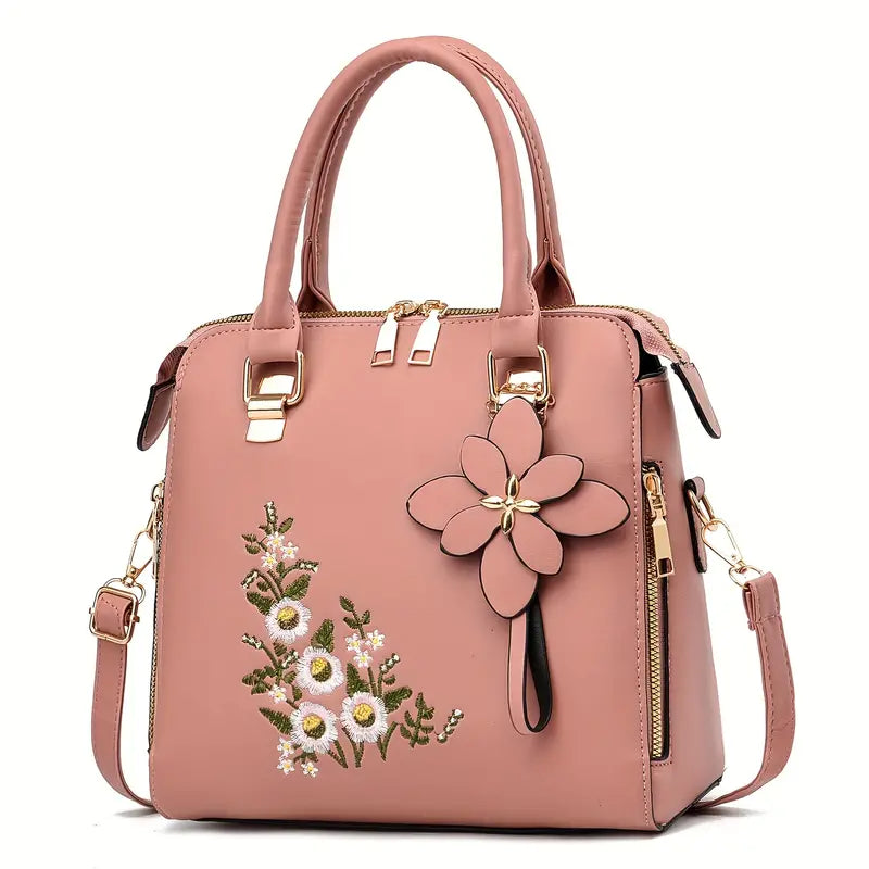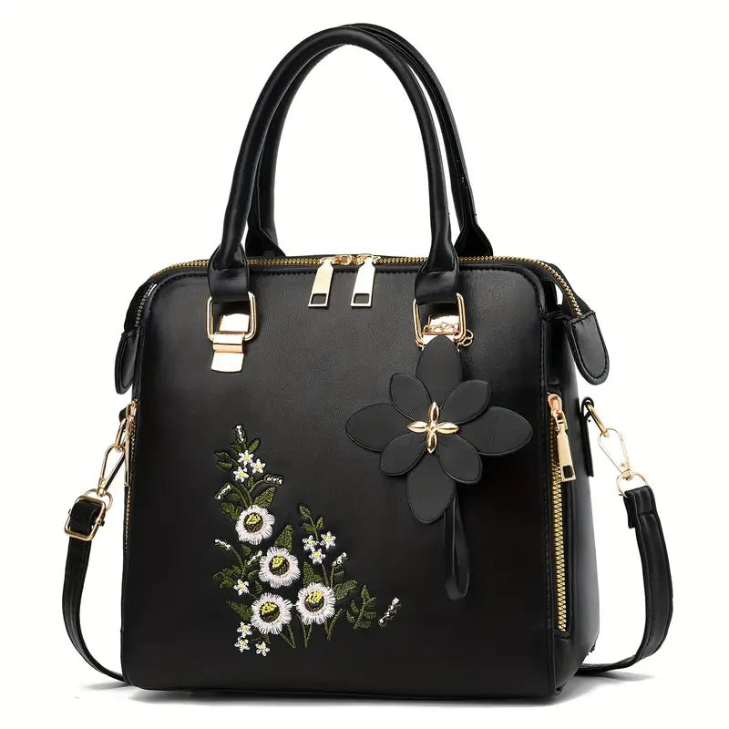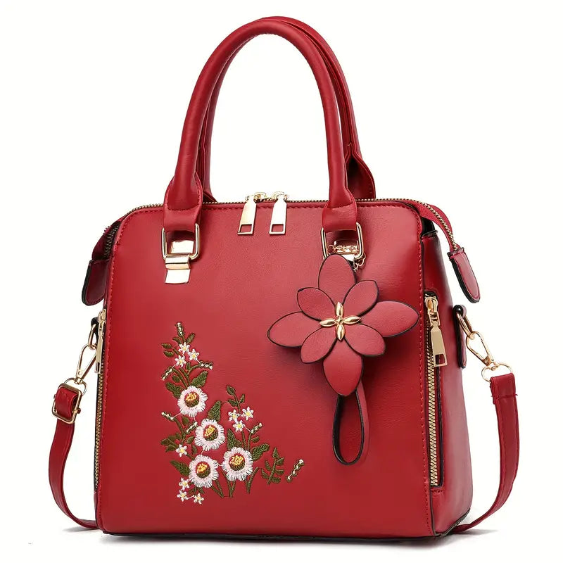Bolsa feminina bordada elegante, bolsa de couro sintético