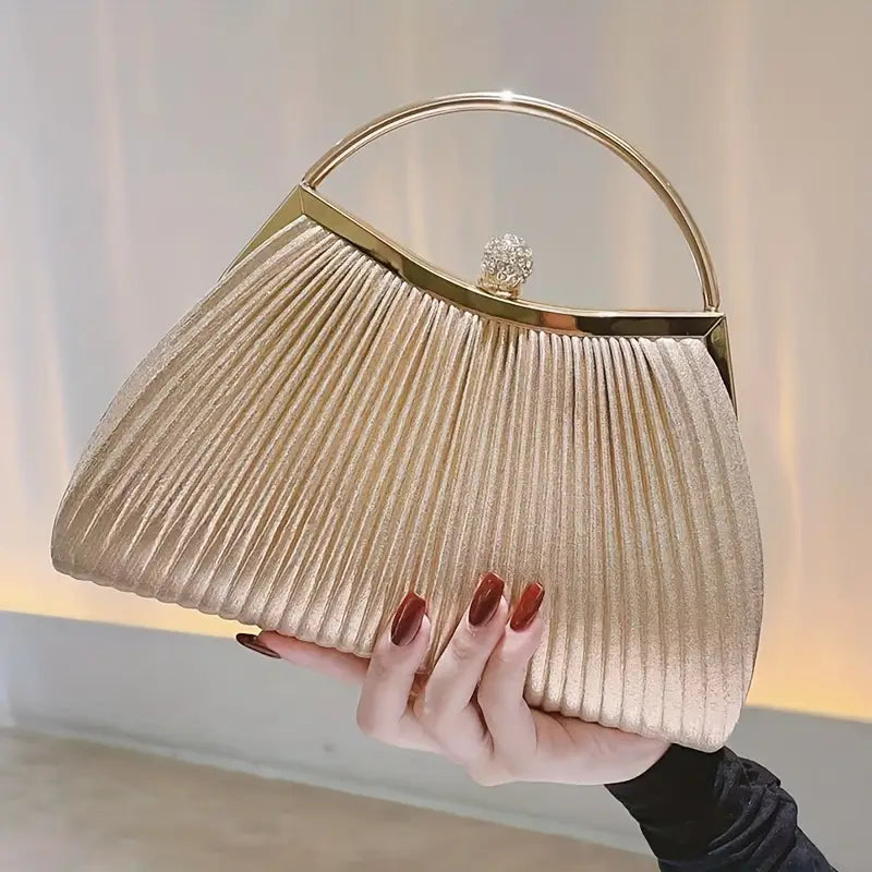 Bolsa franzida para mulheres, bolsa clutch com anel superior