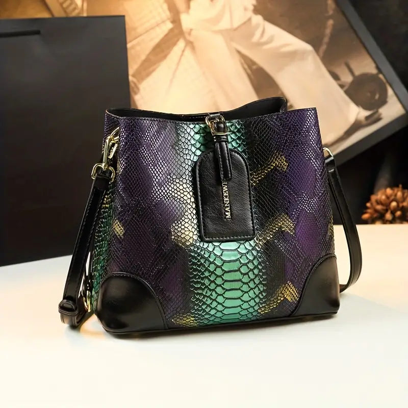 Bolsa luxuosa vintage com padrão de pele de cobra, bolsa clássica feminina, bolsa de ombro e bolsa crossbody