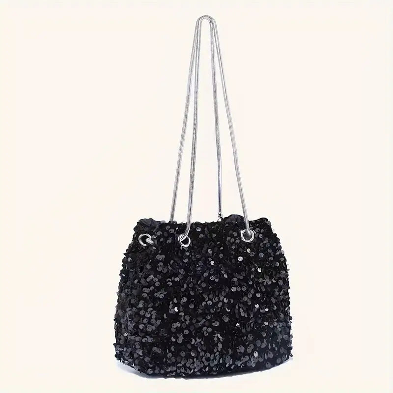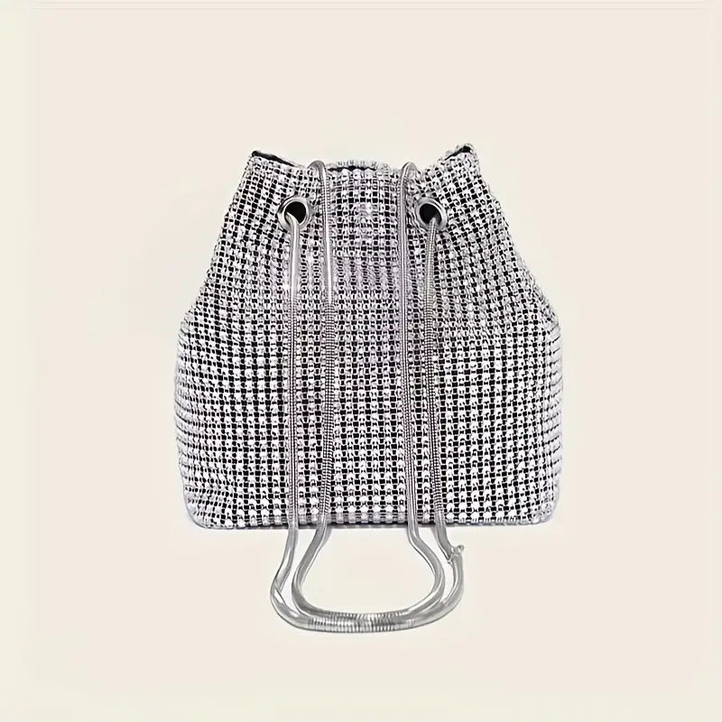 Bolsa moderna com strass completo, bolsa de ombro com cordão