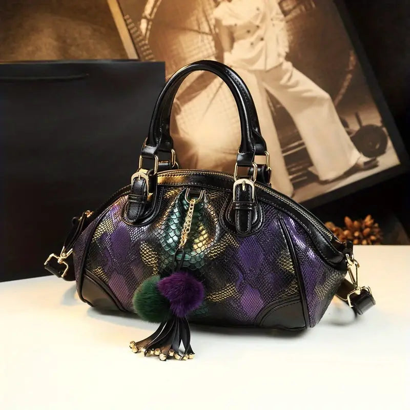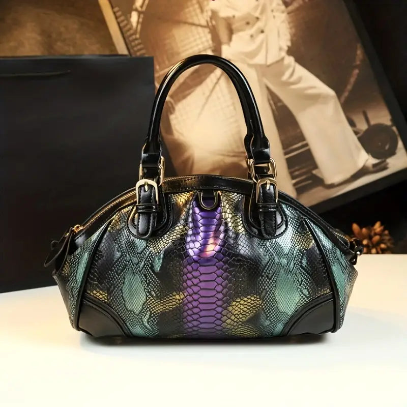 Bolsa vintage com estampa de pele de cobra, bolsa crossbody de luxo retrô, bolsa clássica feminina