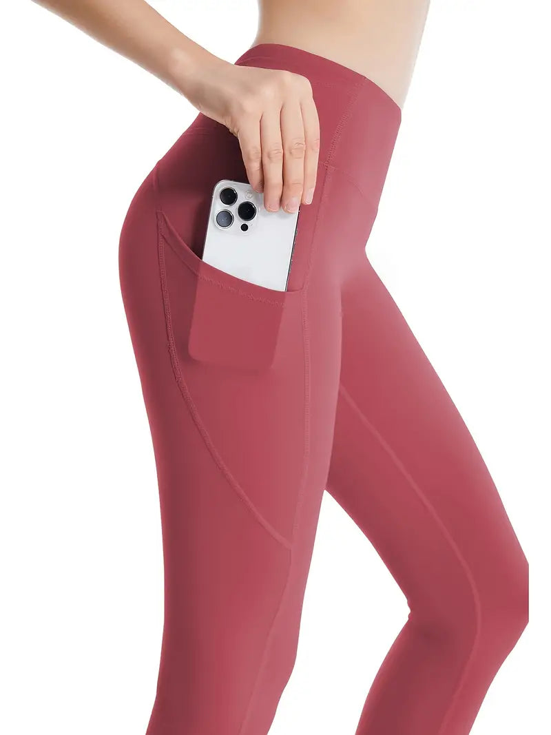 Calça colante elásticas de cor sólida – com um bolso para telefone!