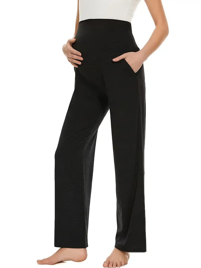 Calças de apoio de barriga de cintura alta para mulheres grávidas com bolso, casual elástico elástico solto calças de lazer maternidade