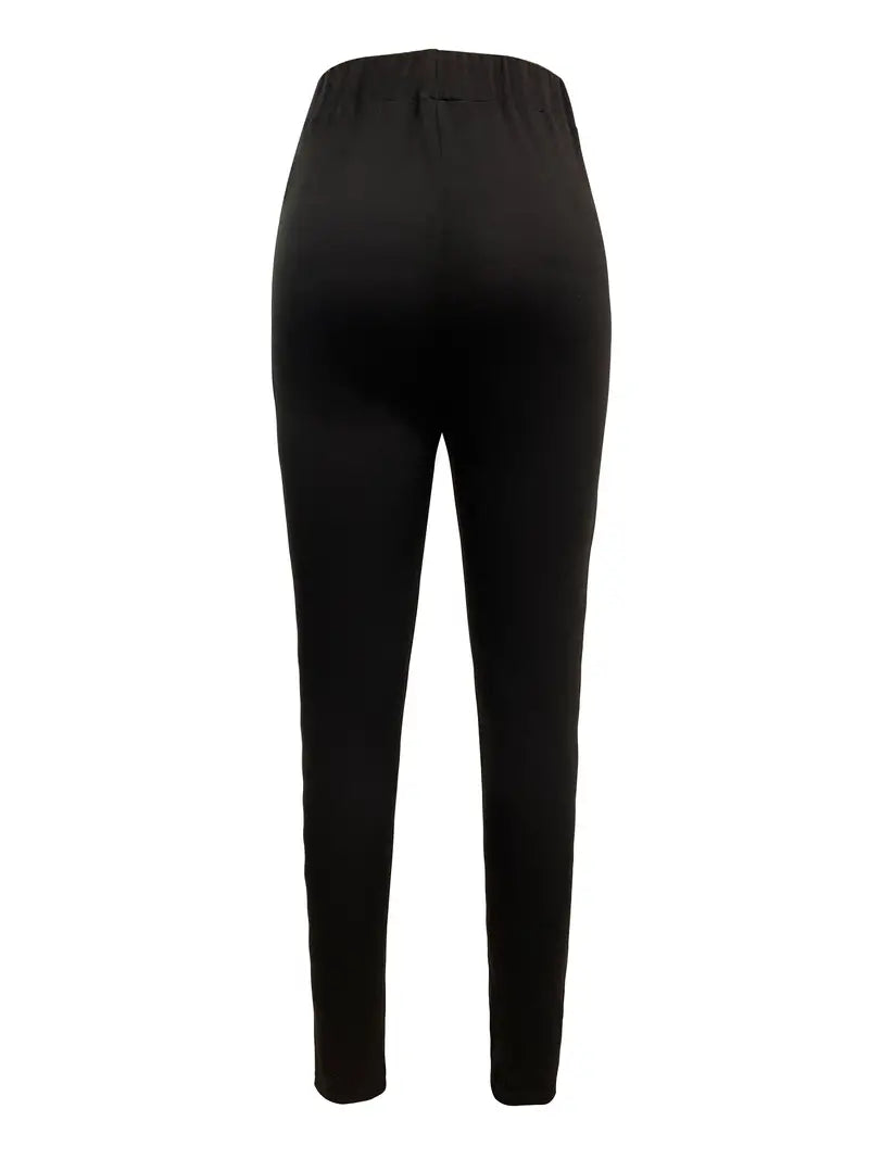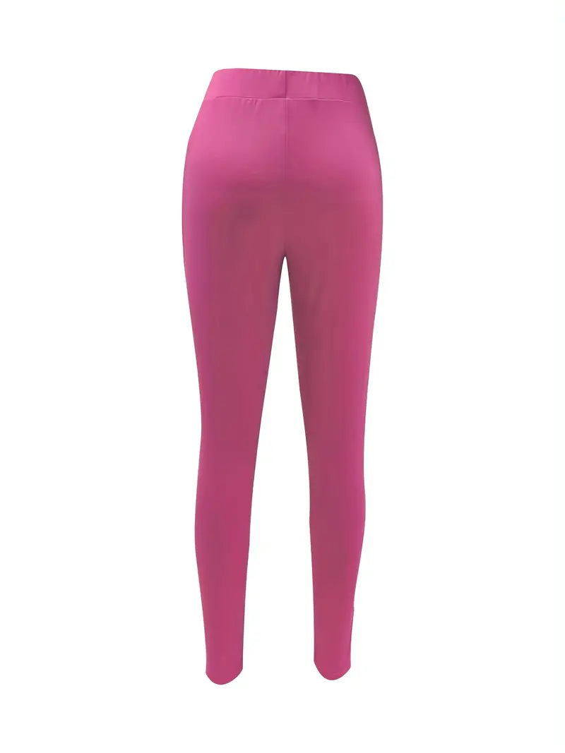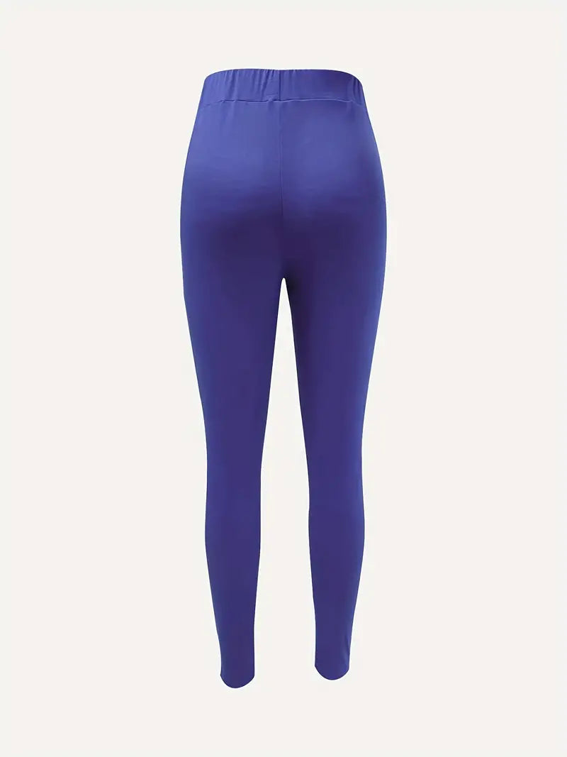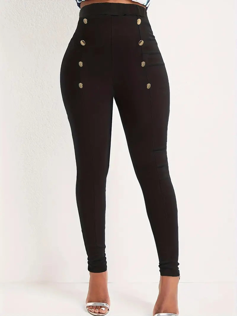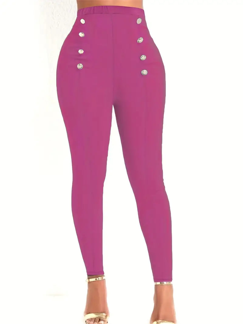 Calças de cenoura com decoração de botão sólido, calças casuais de cintura elástica fina