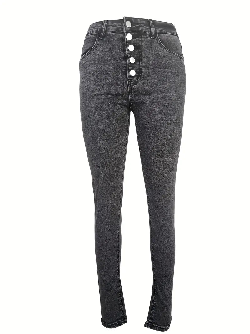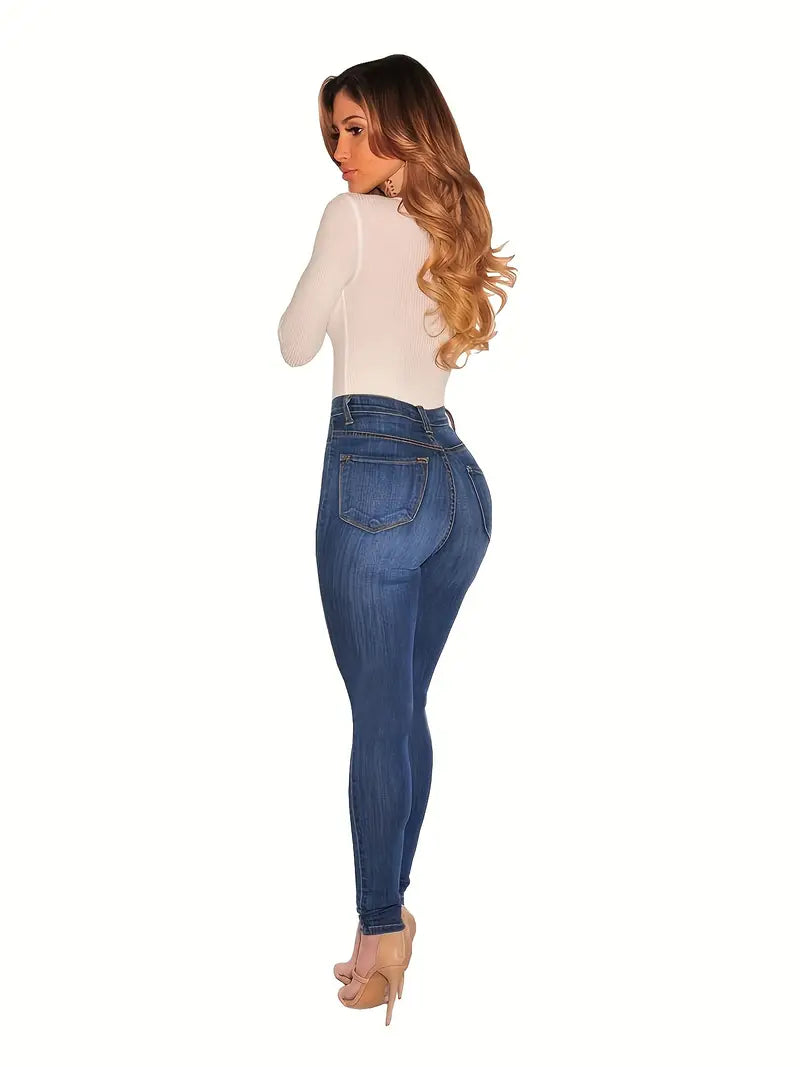 Calças jeans skinny casuais de cintura alta