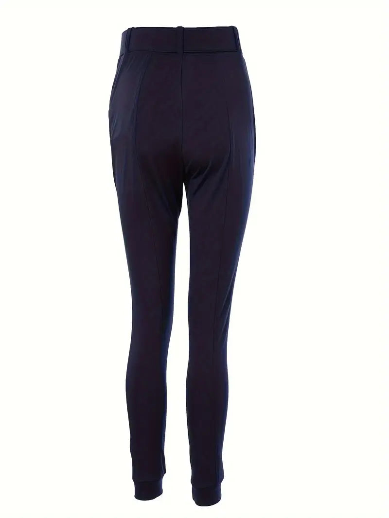 Calças skinny de cor sólida, calças casuais de cintura alta