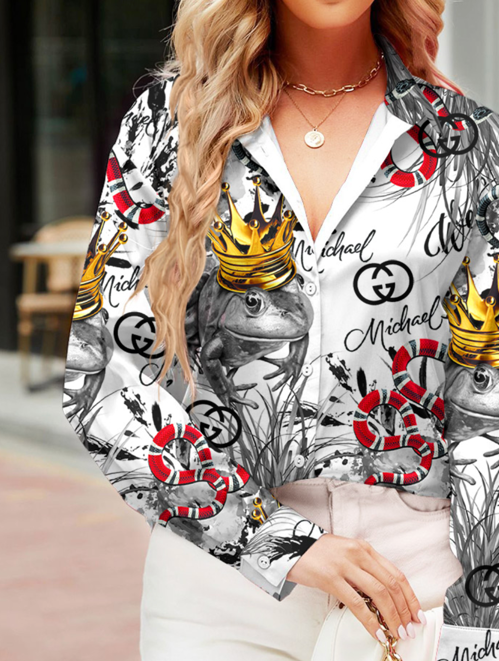 Olá, nosso contacto: 84-7374872; 84 382 205; 87 434 1611; Produto: Camisa Feminina GUCCI Material: 95% Poliéster, 5% Spandex Tamanhos: S, M, L, XL , XXL