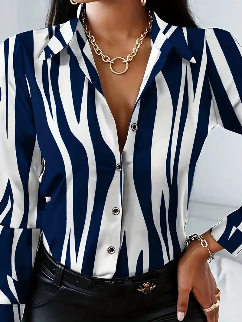 Camisa listrada com botão frontal, camisa casual de manga comprida