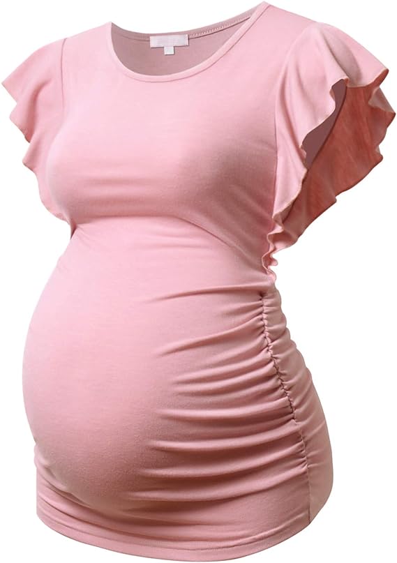 Camiseta com manga lateral franzida, blusa casual para gravidez, túnica