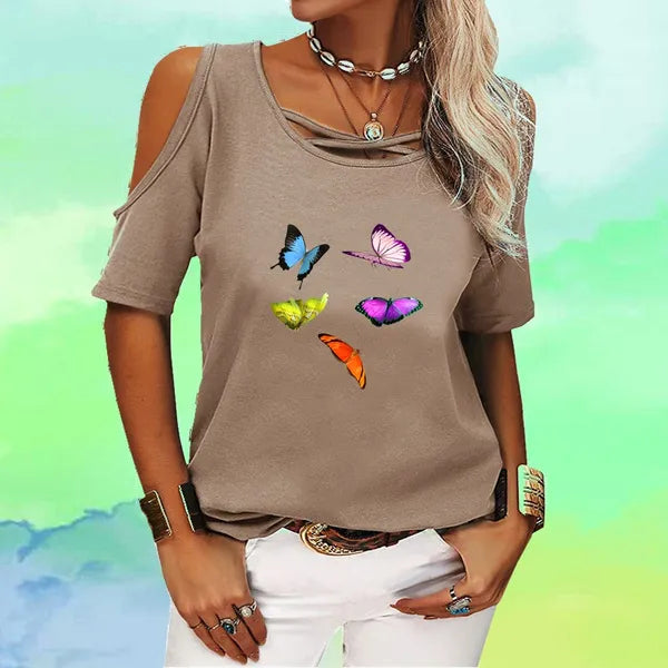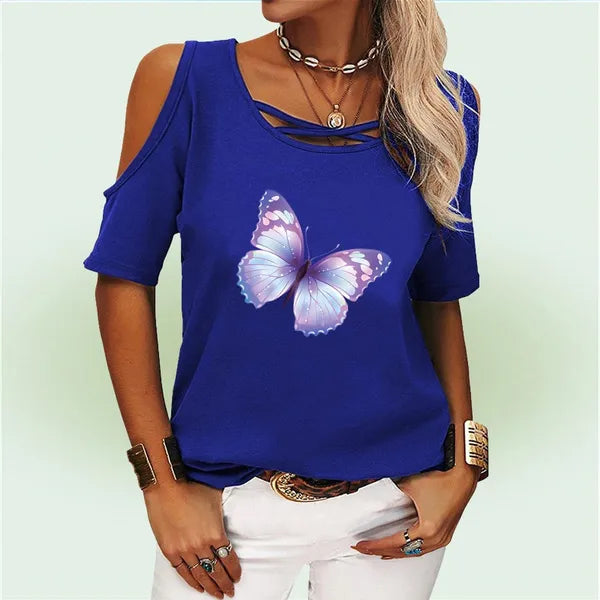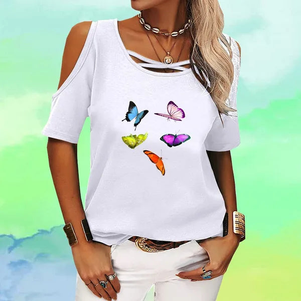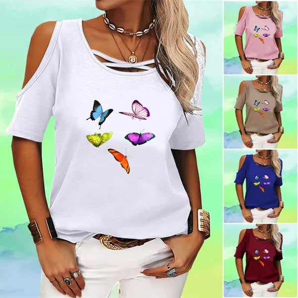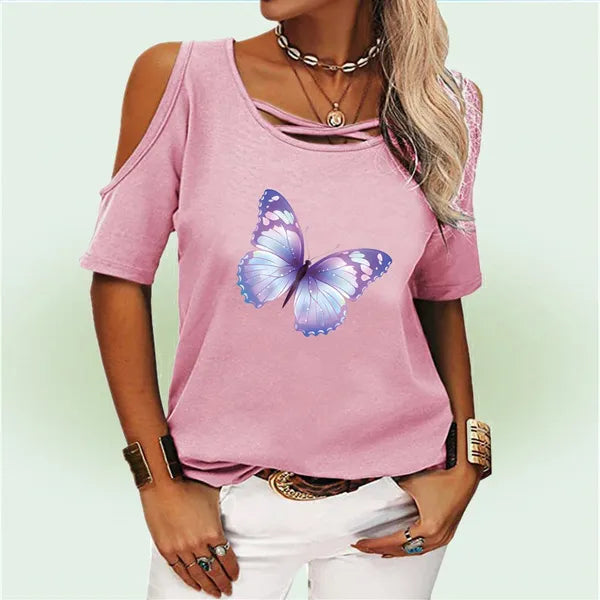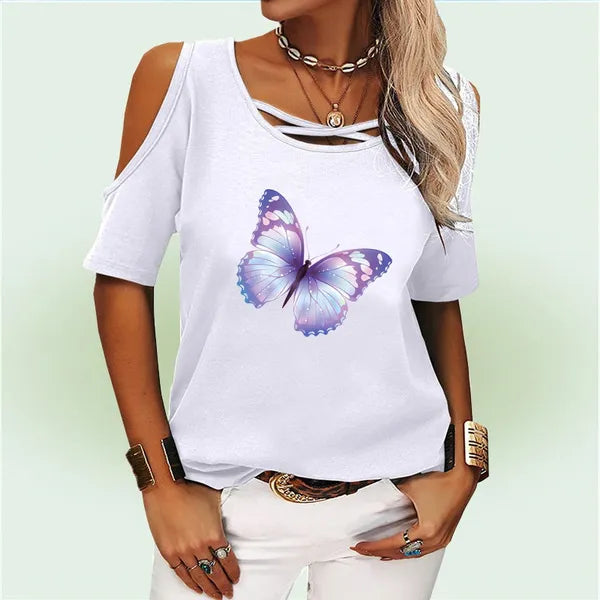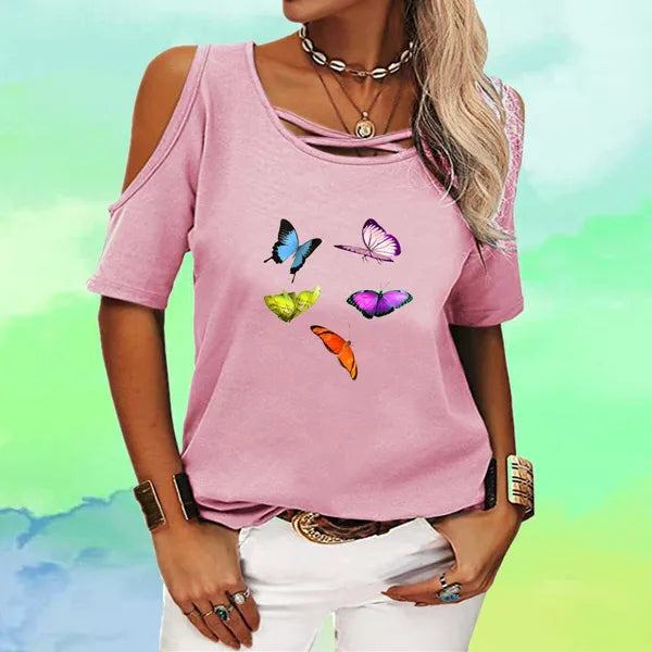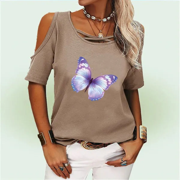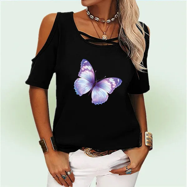 Camiseta Feminina com Estampa de Borboleta Moda de Verão