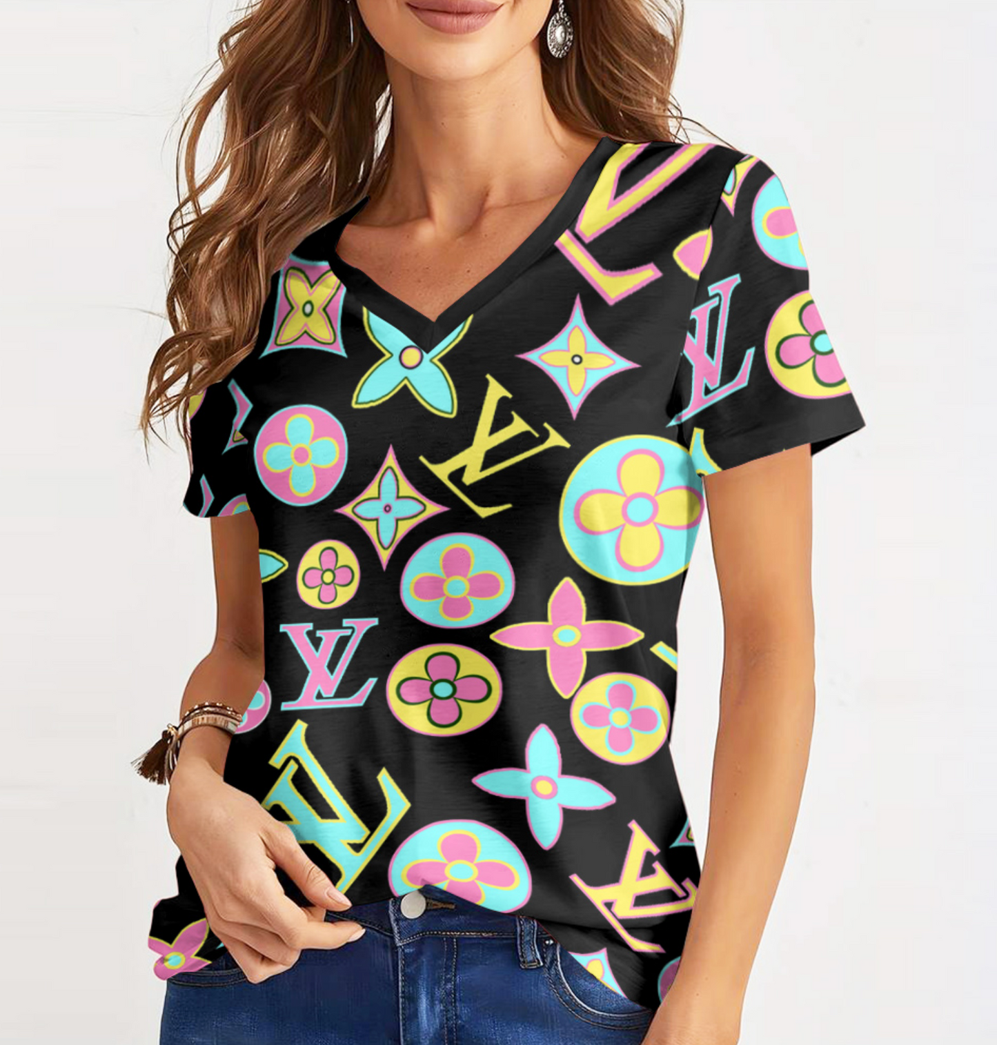Produto: Camiseta Feminina de gola V LOUIS VUITTON;