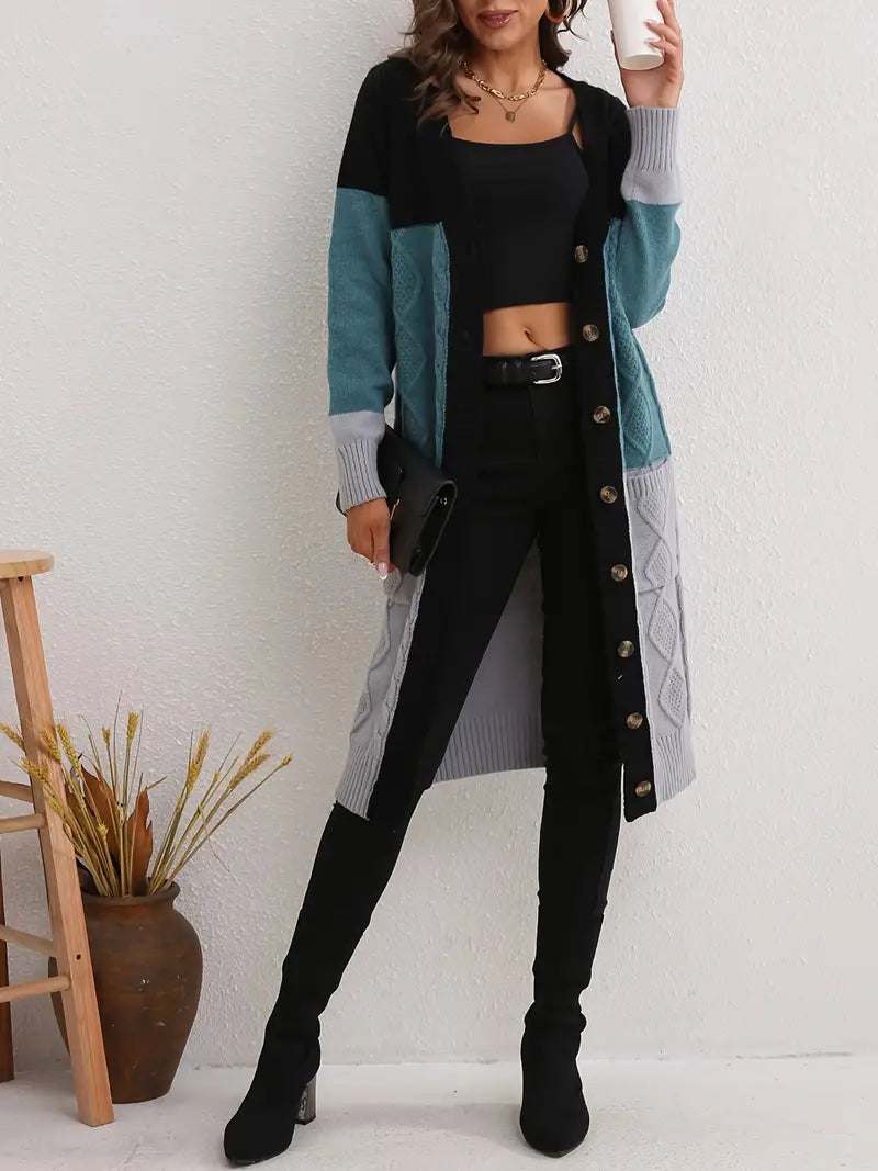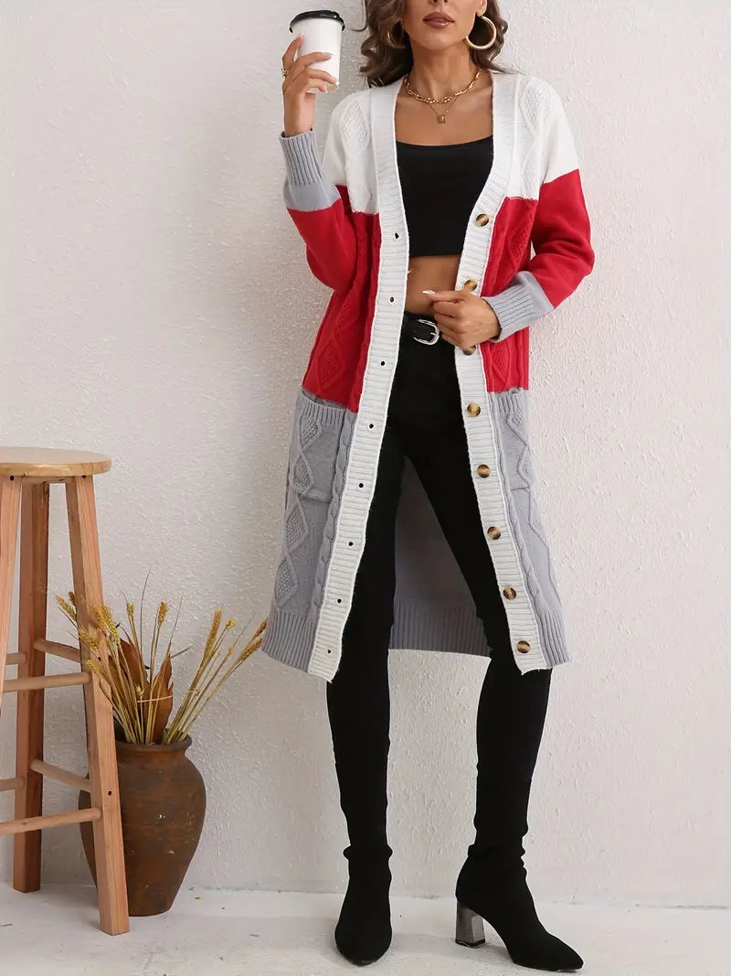Camisola chique de malha tartan para mulheres, com mangas compridas aconchegantes