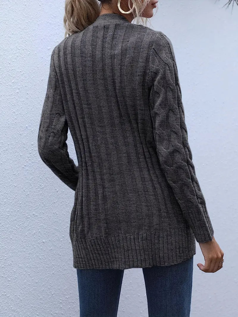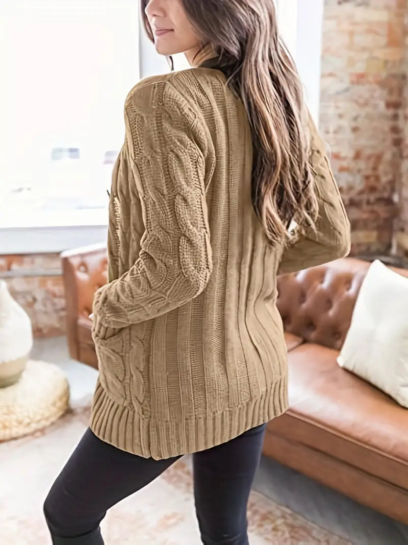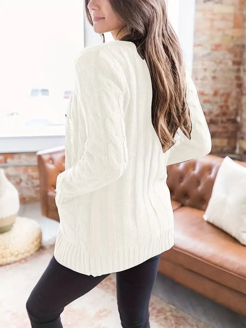 Camisola de malha aconchegante com botão frontal – estilo casual de manga comprida quente