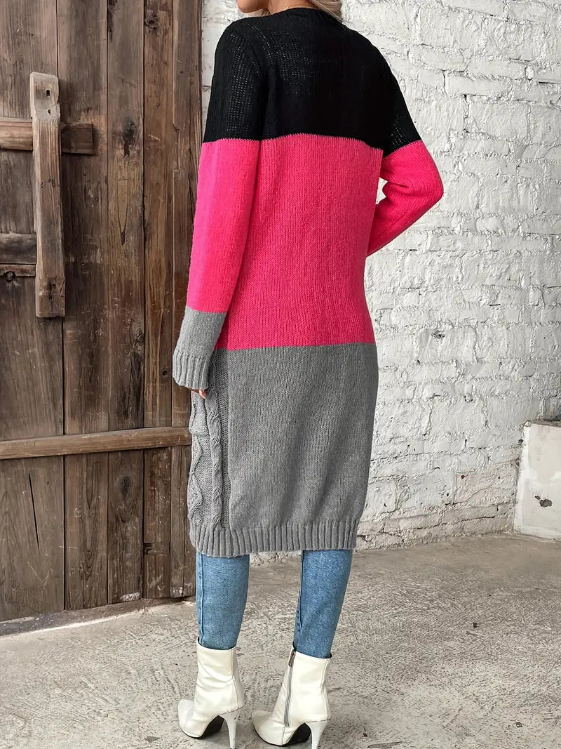 Camisola de malha com botões coloridos, suéter casual de manga comprida com bolso