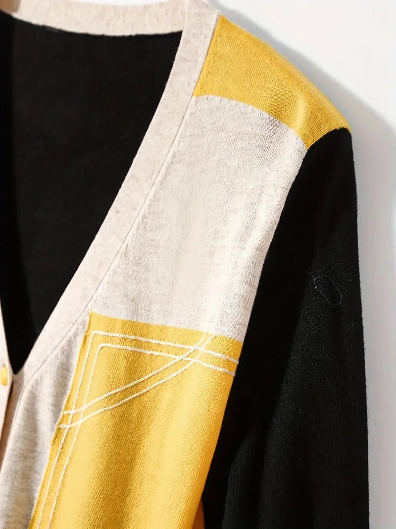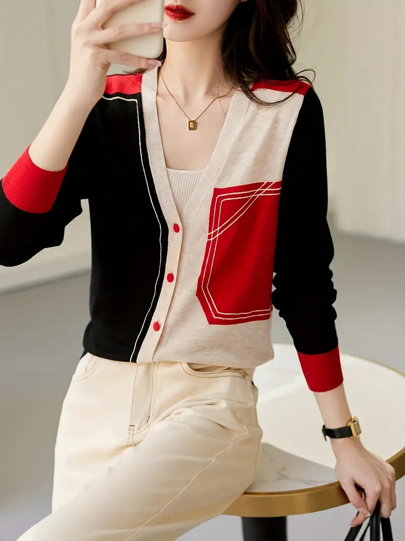 Camisola de malha versátil com bloco de cores – chique com decote em V