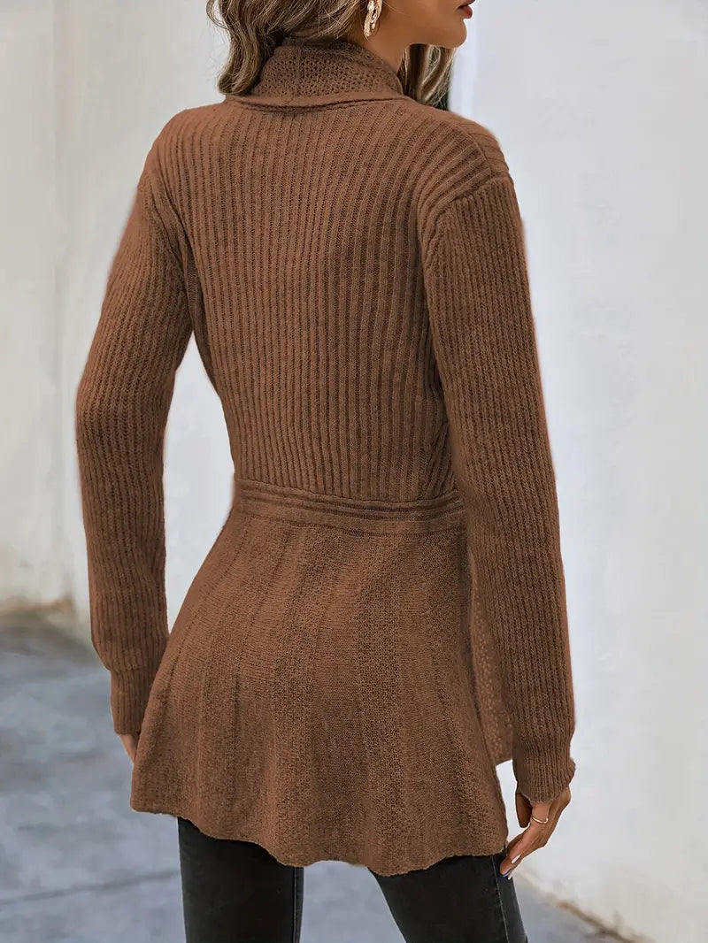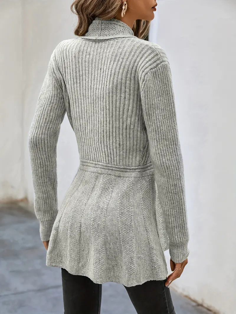 cardigã com bainha com babados na frente aberta, cardigã casual de manga comprida