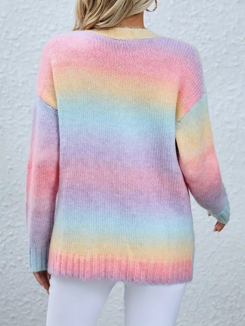 Produto: Cardigã macio com decote em V frente aberta, manga comprida