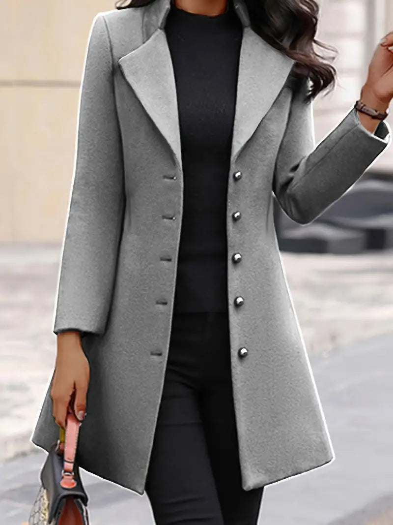 Casaco de lapela frontal com botão, casaco elegante de manga comprida sólida