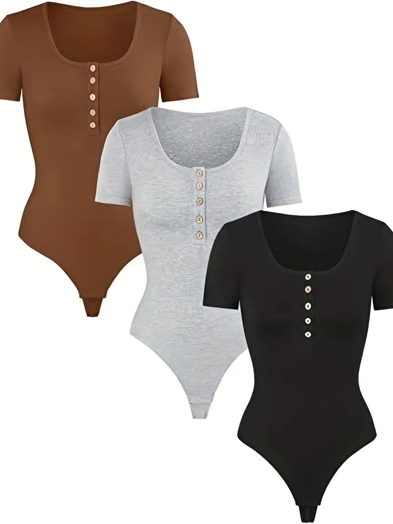 Conjunto de 3 peças de Body liso gola redonda com botão