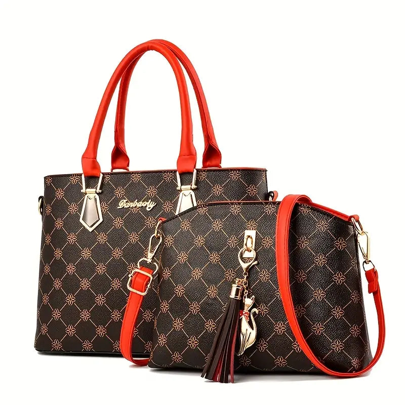 Conjunto de bolsas de 2 peças com estampa floral, sacola feminina de couro PU, bolsas crossbody