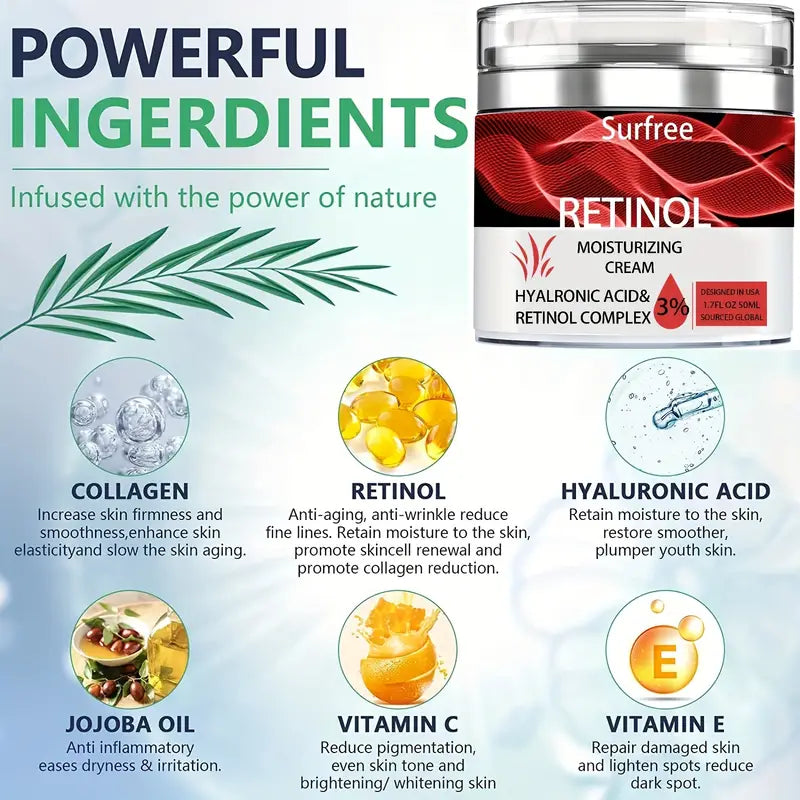 Creme Antienvelhecimento de Colágeno com Retino , Ácido Hialurônico, Vitamina C + E