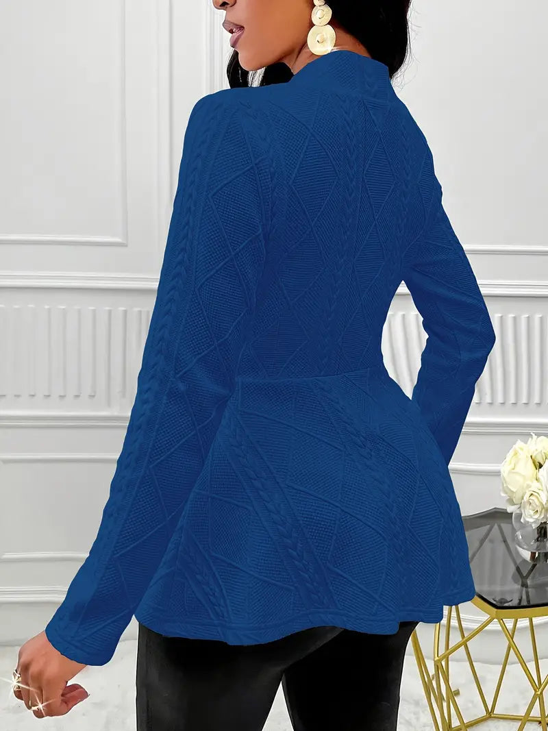 Camisola feminina elegante de botão único com bainha elegante com babados