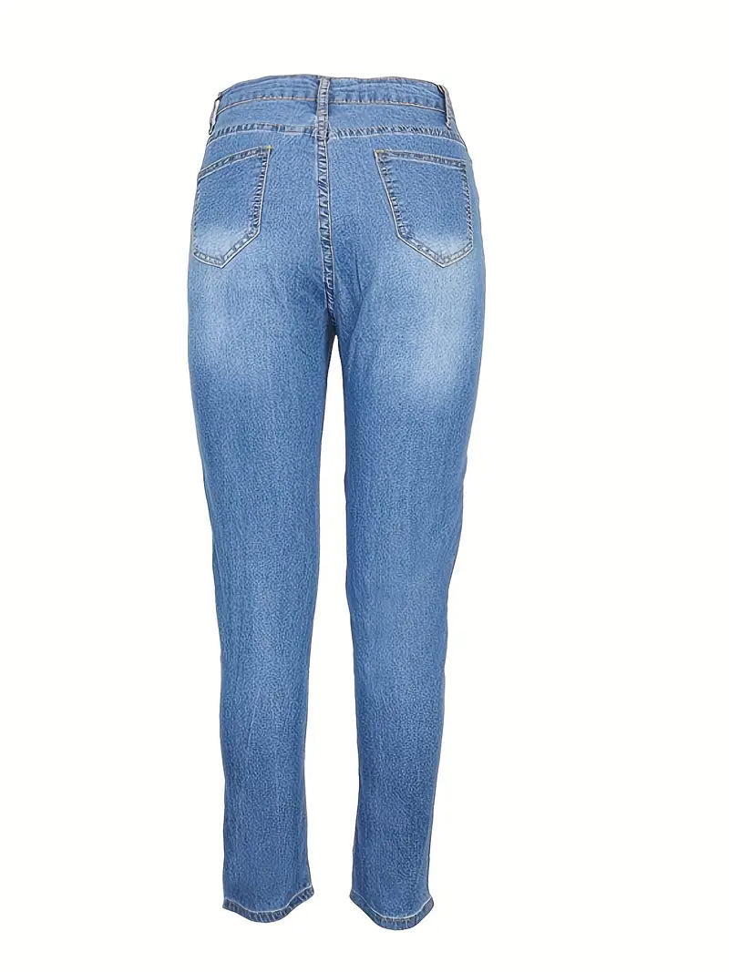 Jeans skinny casuais com estampa de borboleta, jeans justos justos e justos, jeans femininos