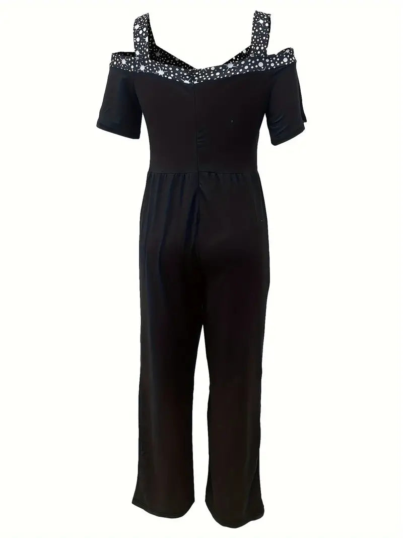 Macacão de ombro frio com decote em V, macacão sexy de perna larga