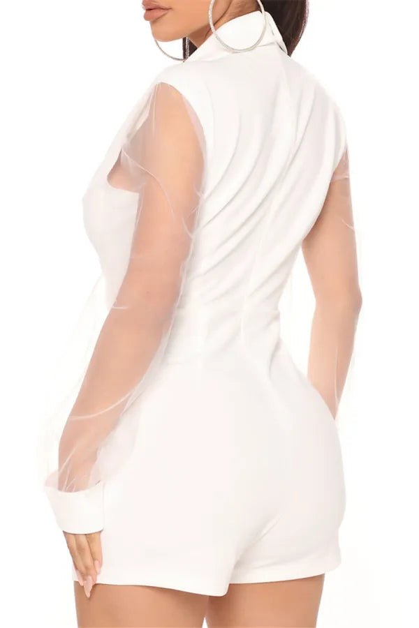 Macacão regular sexy casual sólido patchwork transparente com decote em V