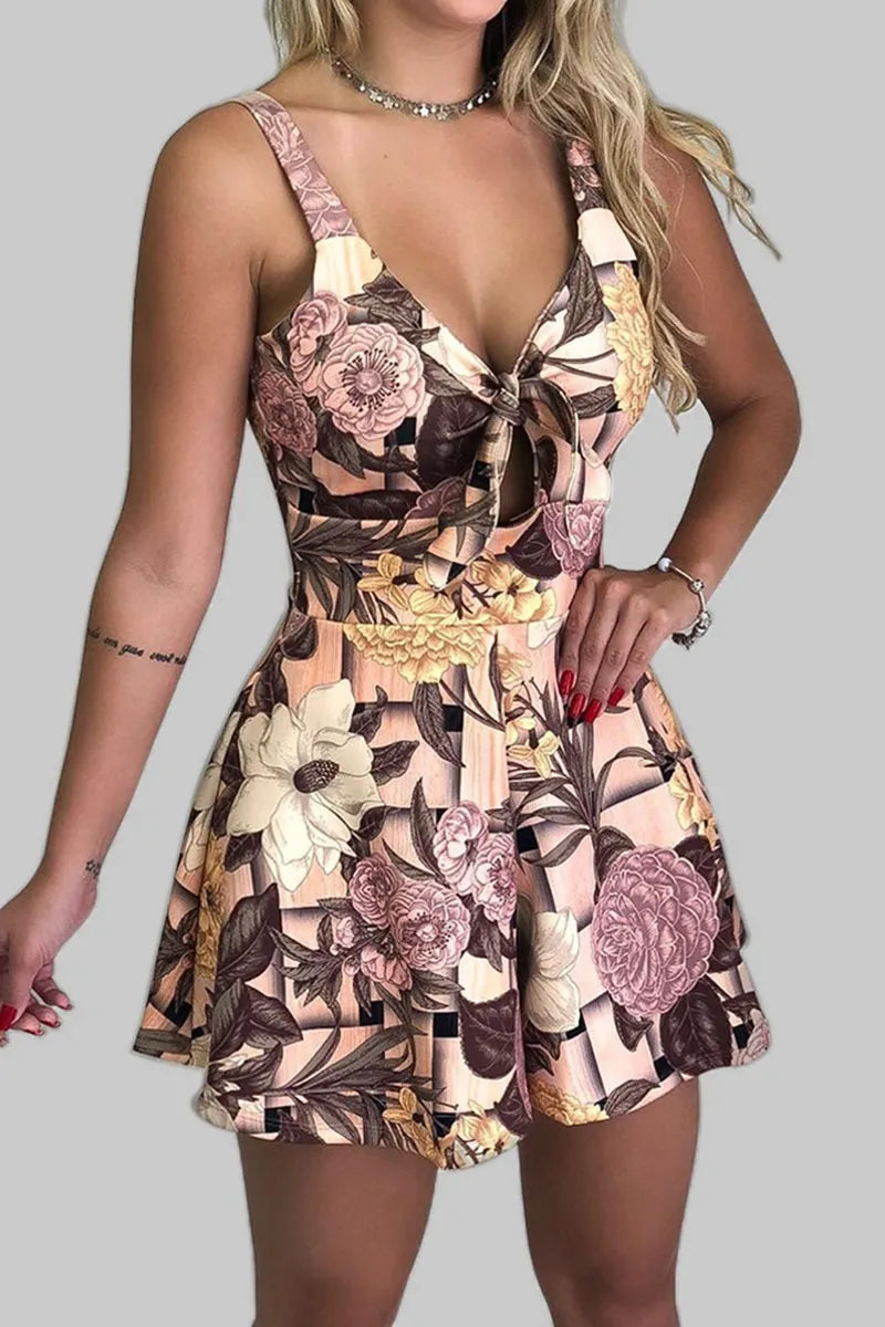Macacão Sexy reto com estampa patchwork de alça espaguete