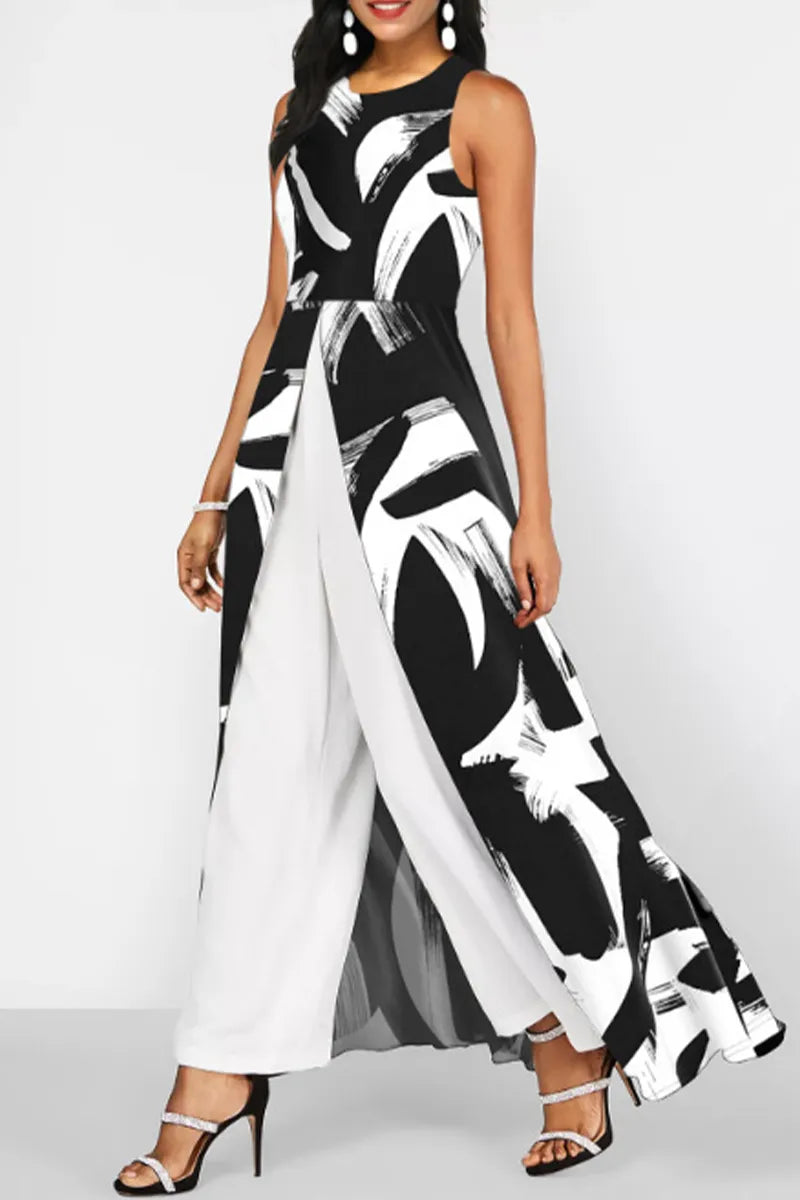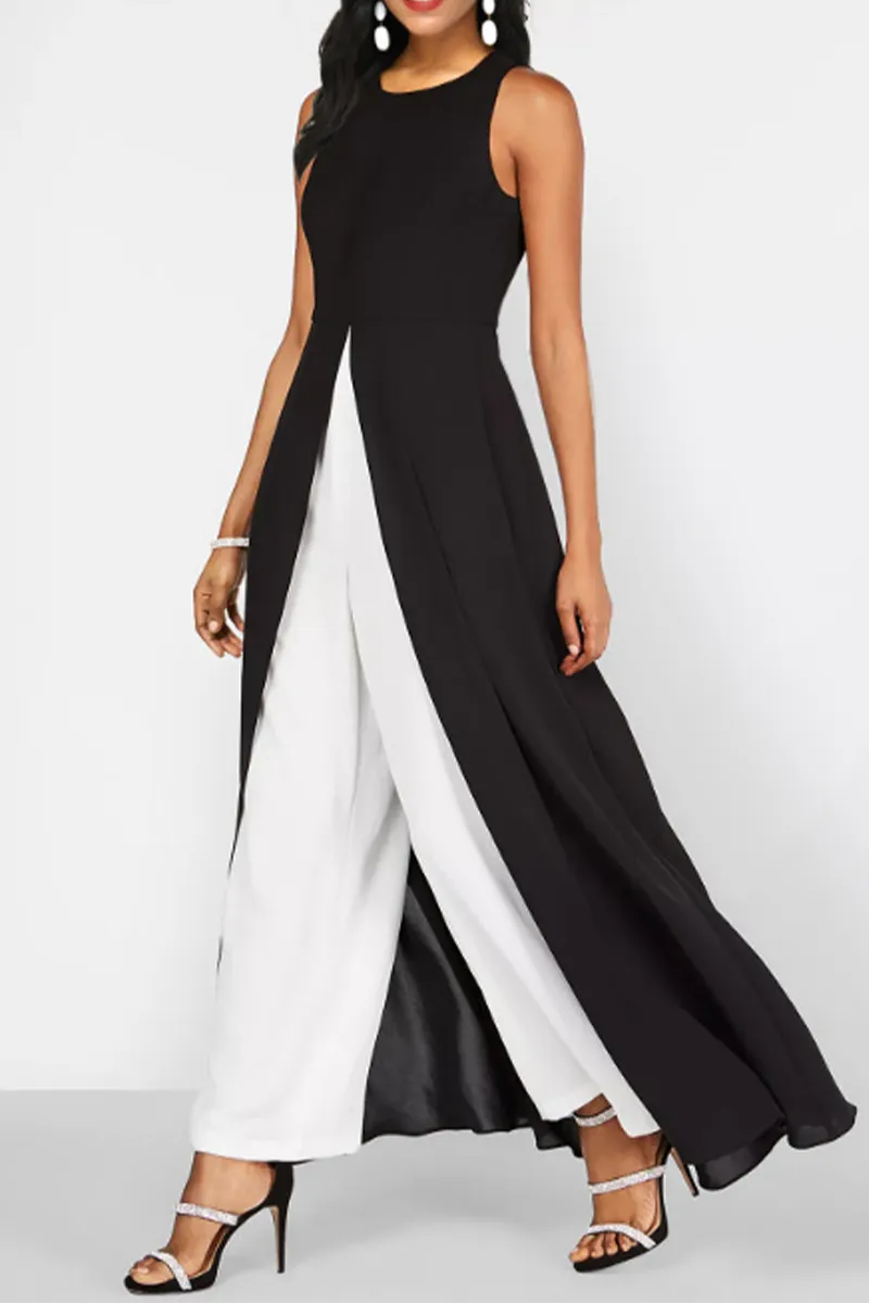 Macacões Estampado Sólido Patchwork Gola Redonda Regular