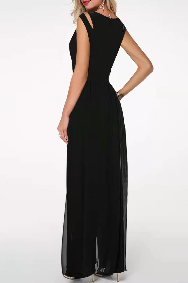 Vestido de festa com lantejoulas e glitter franzido sem mangas