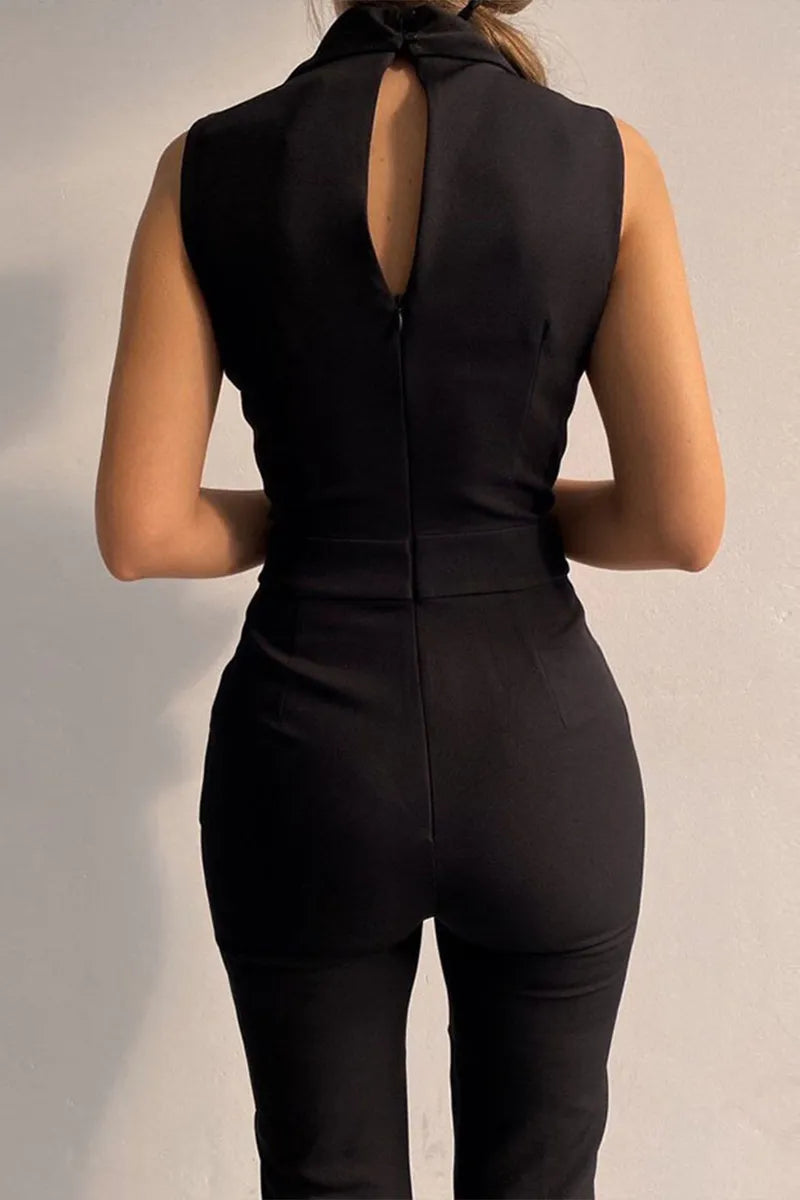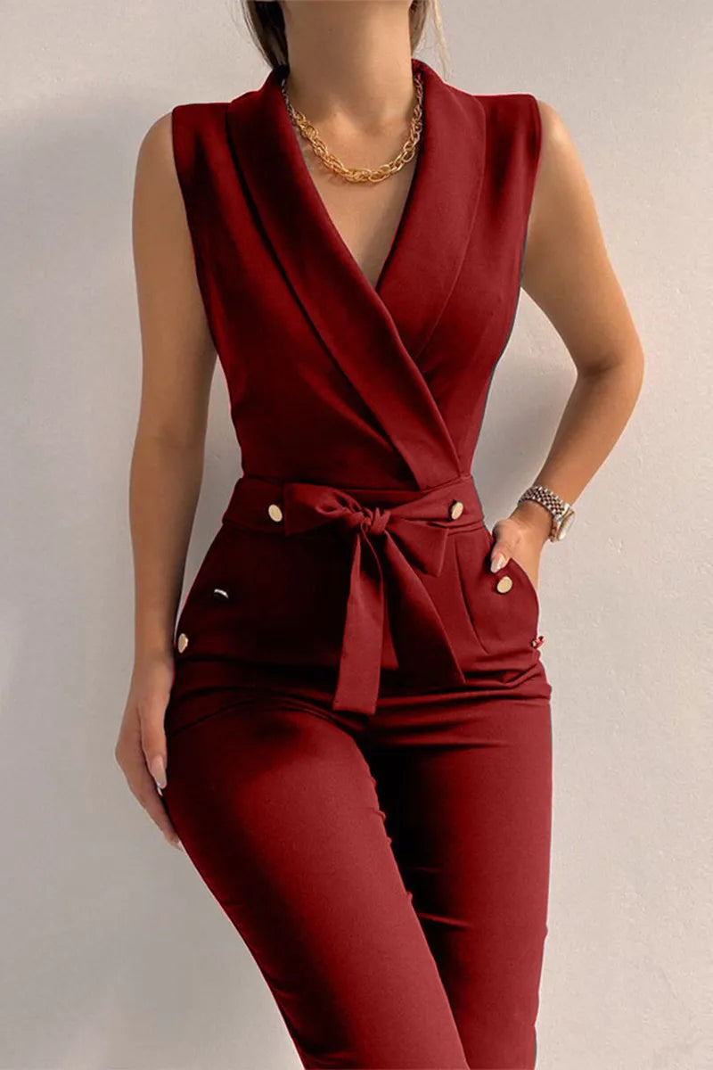Macacões Sólido Bolso Frenulum Decote em V Regular