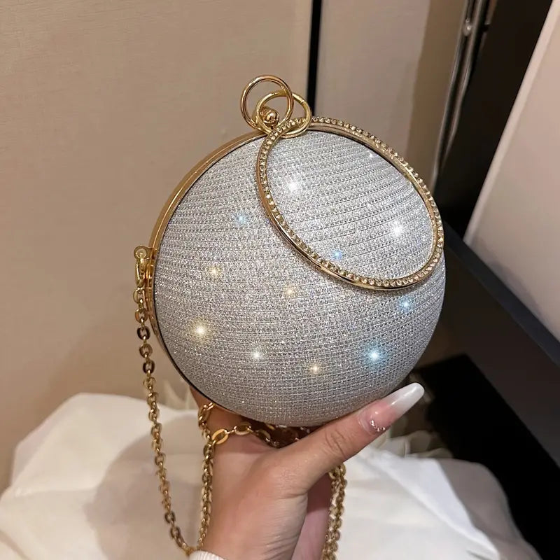 Mini bolsa formato de coração, bolsa crossbody com corrente brilhante