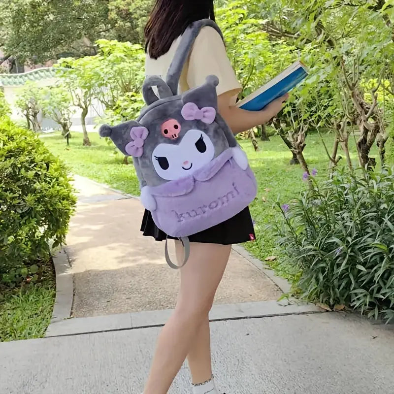 Mochila de pelúcia Sanrio Cartoon, bolsa de armazenamento Kuromi