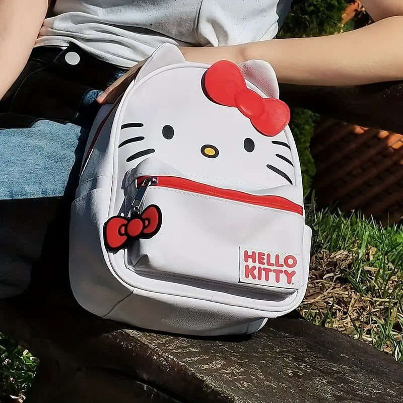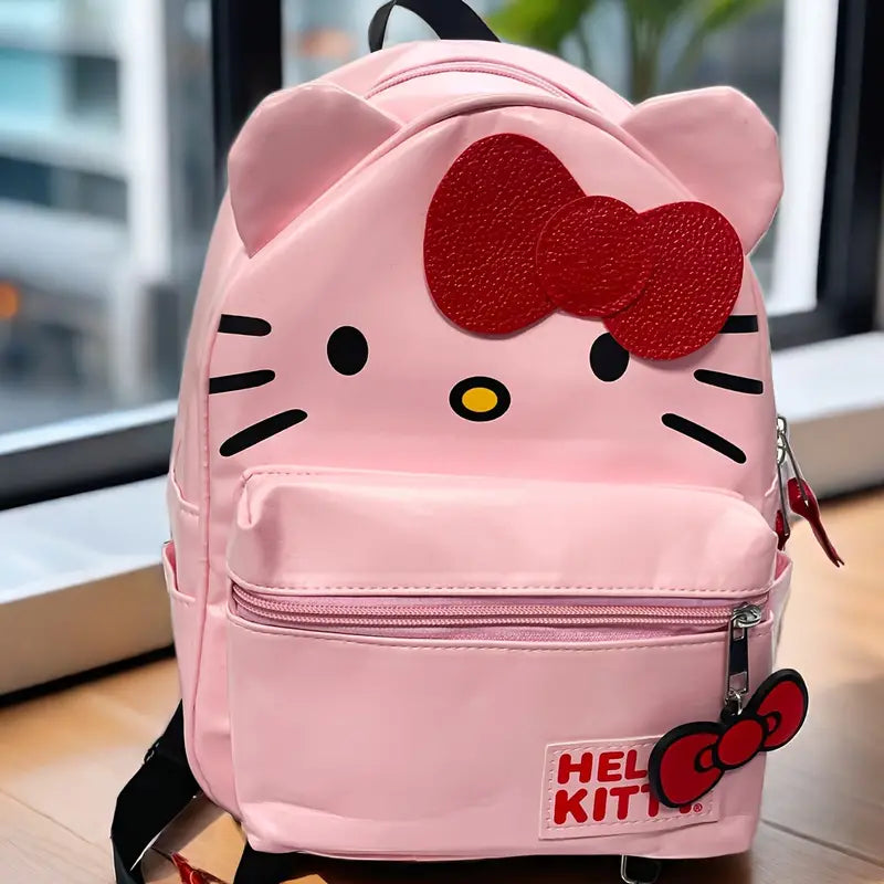 Mochila Sanrio Hello Kitty, mochila de couro PU de desenho animado, linda mochila escolar
