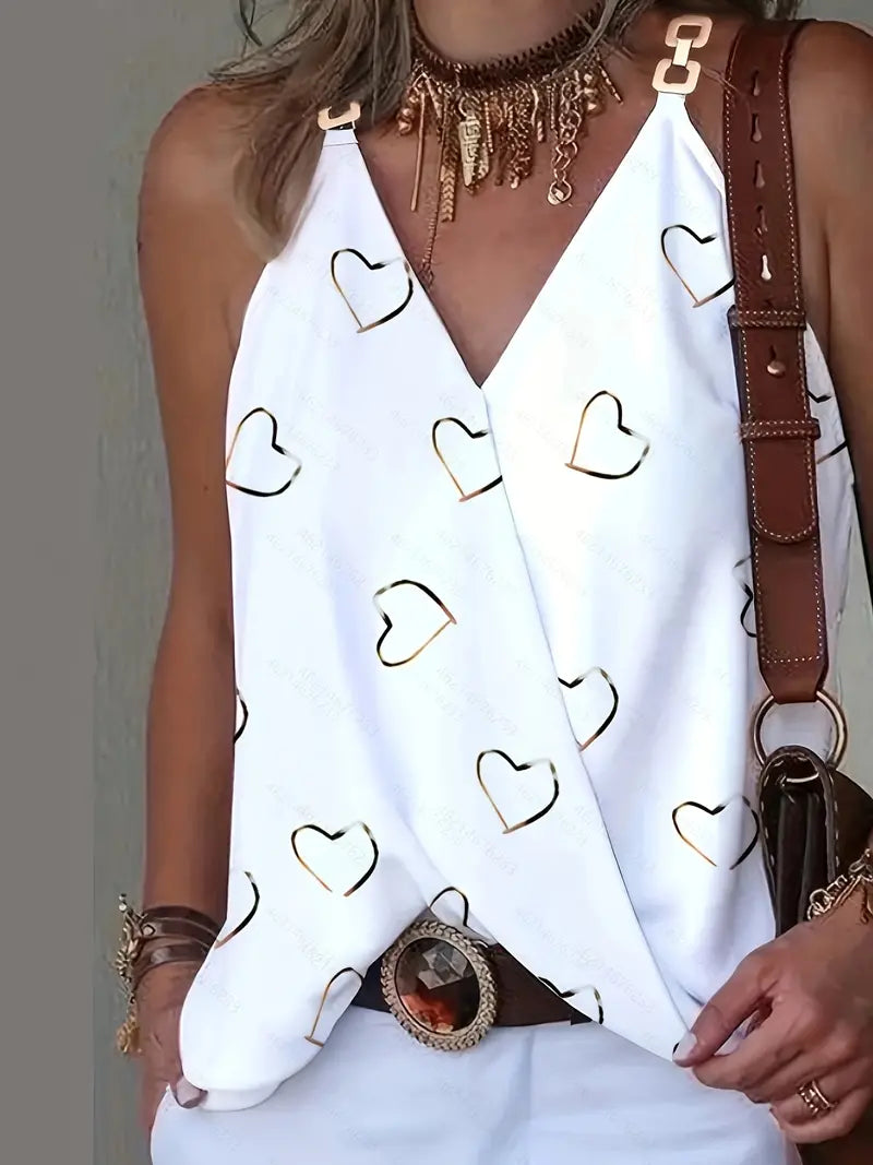 Regata colorida com decote em V com corrente, regata casual sem mangas para o verão, roupas femininas