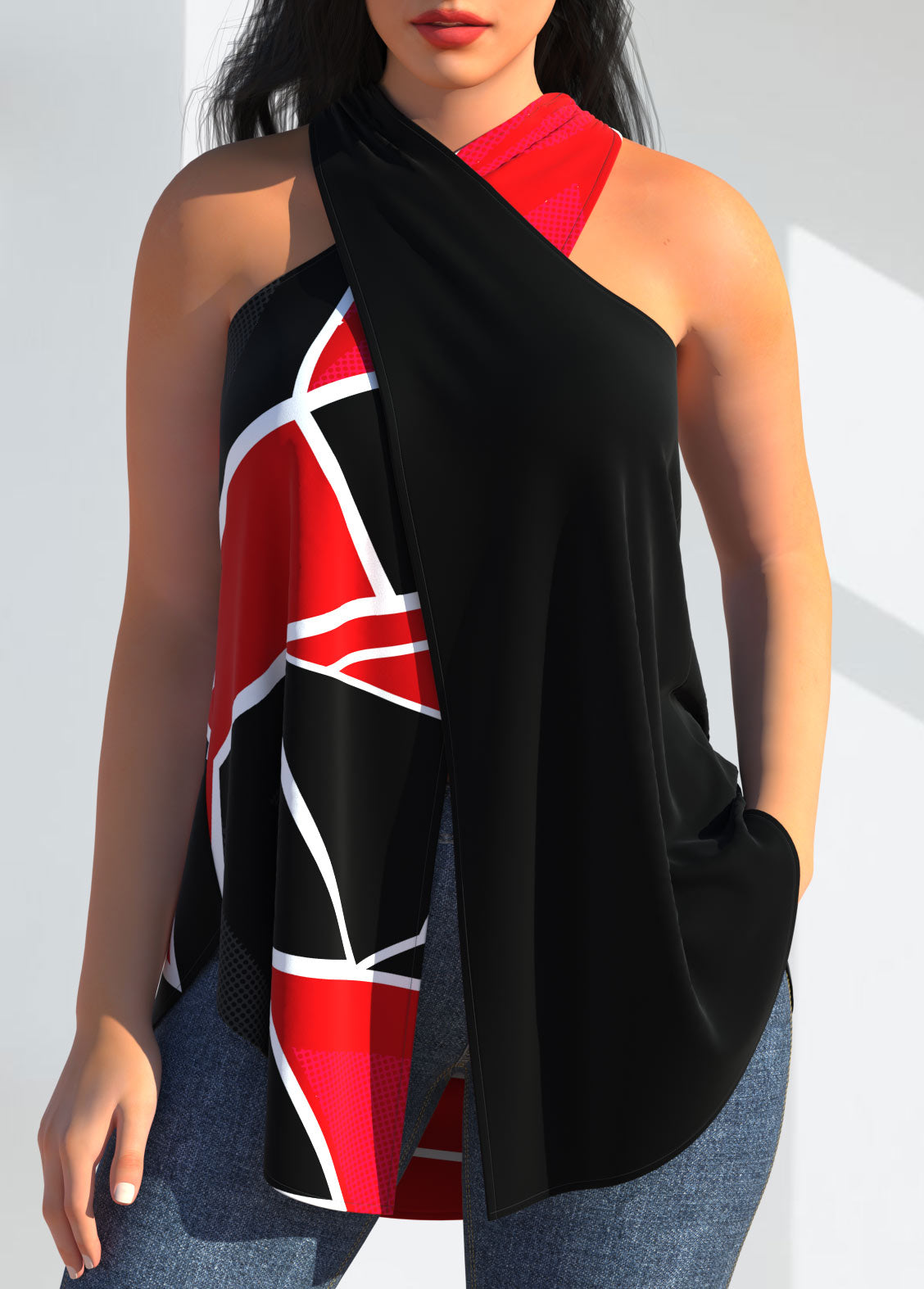 Regata Preta com Estampa Geométrica Cross Halter